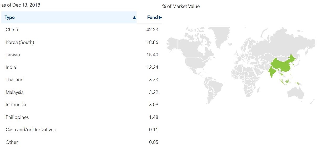 看好亚洲新兴市场的投资者可简单方便的通过iShares MSCI Emerging Markets Asia ETF(EEMA)进行投资。这是一只专注于亚洲市场的ETF,包含了所有MSCI新兴市场指数的亚洲国家和市场。EEMA与其它投资亚洲新兴市场的ETF的不同之处主要在于其追踪的指数包含了韩国和台湾。