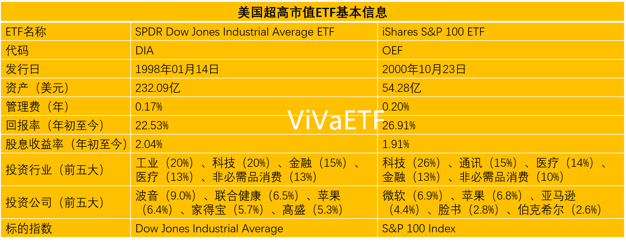 令人惊讶的是,尽管OEF和DIA专门投资超高市值股票,但是在回报率方面相比投资大中盘的标普500 ETF(SPY)也不遑多让。SPY年初至今的回报率为26.59%,略低于OEF的同期回报率。