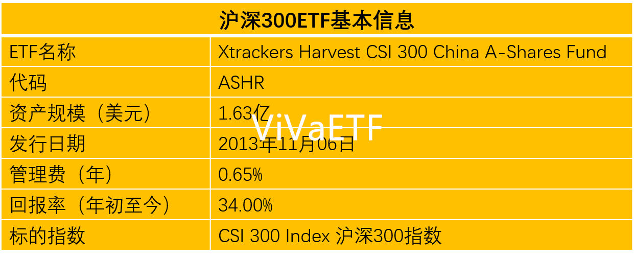 Xtrackers Harvest CSI 300 China A-Shares Fund(ASHR)在五十多只投资中国概念的ETF里资产规模名列第四,但由于前三只ETF的投资范围各有不同——除了A股还投资N股、H股等——ASHR系投资A股市场的首选。